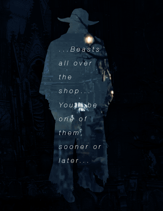 The great irony of the Hunter’s fate is that they must empower their blade arm with the very blood they drench their black coats in for the sake of their profession. In fact, Hunter’s transfuse the Old Blood into their bodies so much that they inevitably become Beasts themselves, wild and murderous and furry, betrayers to their order.
