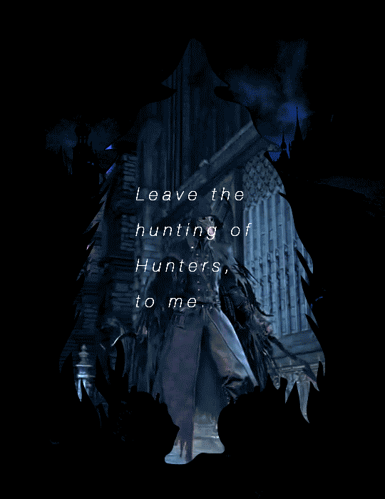 As you enter the employ of Gehrman in this eleventh hour, all organization is lost. You are a lone wolf on the trail of the Beasts infesting the city. Any Hunter comrades you encounter are as likely to be hunting you as they are to ally to your cause. The once noble profession has fallen to the same madness that seized the rest of the city – the outcome their blades were violently trying to prevent.