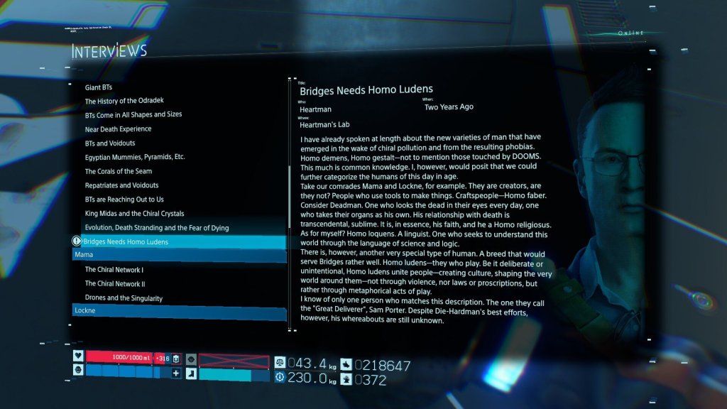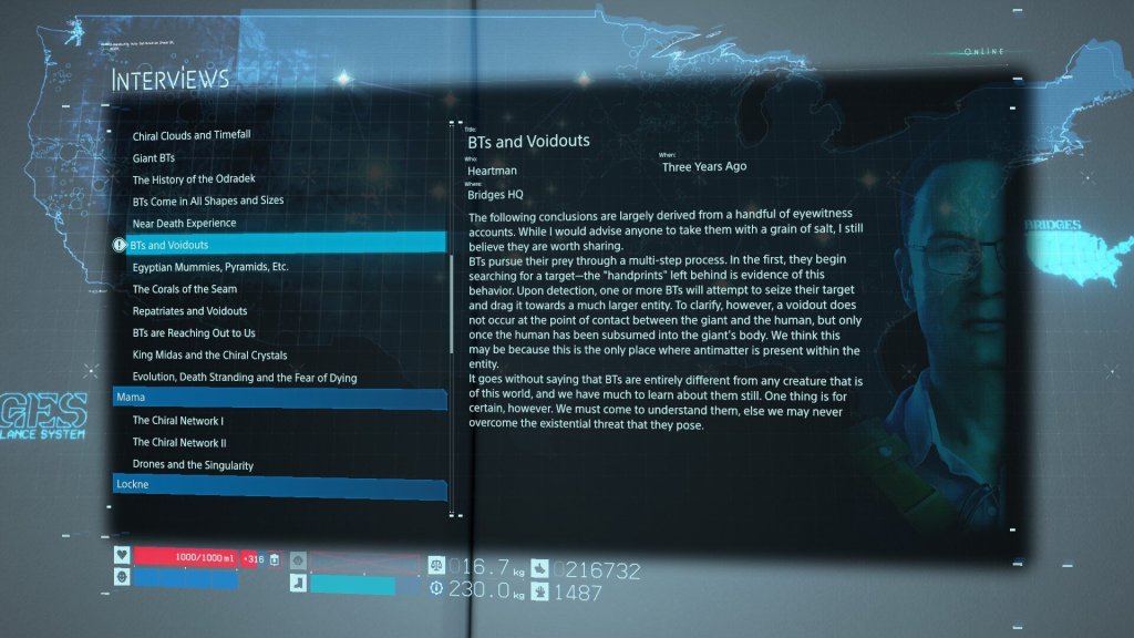 The resulting world that Sam Porter Bridges traverses is rife with the violent — and downright spooky — aftereffects of this interconnection between the realms of the living and the dead, with large swaths of the environment and basically all former civilization wiped out. Remnants of humanity live in locked private enclaves, in warehouses and research stations and little remote bases where the few remaining people pursue independent projects and only speak through holograms.
