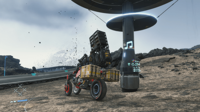 An asynchronous multiplayer feature — not that unlike the messages and ghostly apparitions of other players in FromSoftware’s Souls series — Strands make their presence known through foreign assets left behind from other players’ experiences and past paths over the landscape. Loose cargo, ropes and ladders, inspiring holograms and music, and tons of functional infrastructure upgrades to your world’s environment are all in play and titled with usernames and profile pics. They get left behind, or consciously constructed, in your world by other players doing their own concurrent playthrough in their own game worlds.