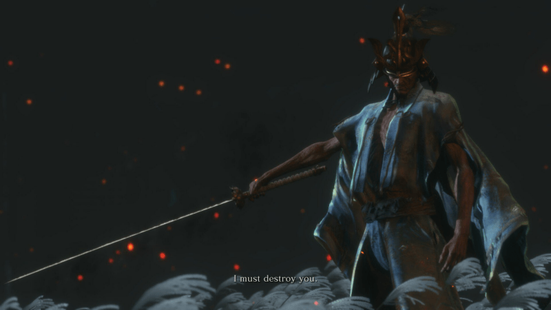 Genichiro Ashina is your first true rival. A cutscene spells out your path from Sekiro’s opening chapter; you meet a helmeted swordsman in a field of white flowing flowers, he severs your left arm, kidnaps Kuro, and sets everything else in motion.