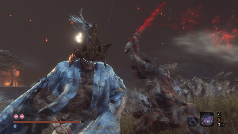 The first major boss battle of Sekiro comes as Lady Butterfly, a grandma shinobi who cackles while throwing shurikens aimed at your neck. A master of illusion, the fight is shifty, with many leaping ranged attacks utilizing the whole of your wide arena. She introduces the speed and diversity of movement that becomes commonplace from the game’s toughest foes.