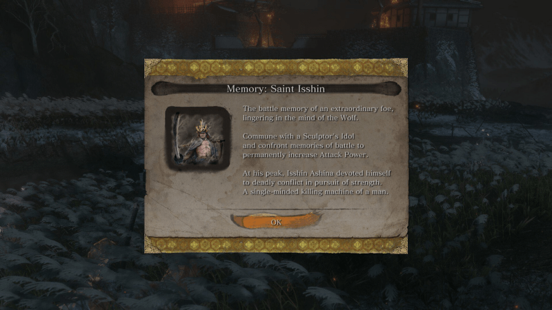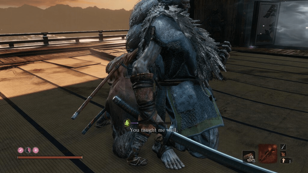 But Isshin remains a satisfying fight throughout, never unfair or without the peeking hope for a victorious resolution. He’s one of the best fights because you can feel his skill is beyond anyone you’ve yet faced — as a swordsman, as a samurai. Isshin’s blades are honorable and true, delivering their strikes with the composure of a more refined killing machine than even you.