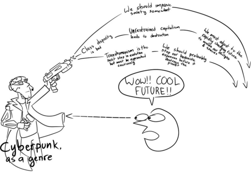 While brainstorming this writing, and to more succinctly summarize the Cyberpunk lore’s defining features, I am reminded of something else “cool.”