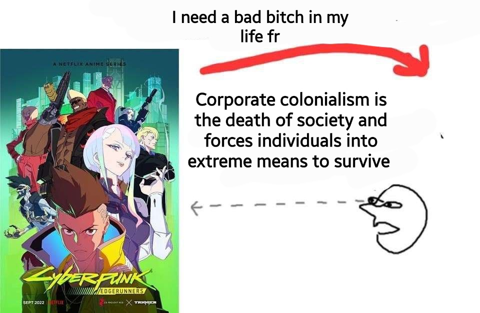 ~ short essay on Cyberpunk: Edgerunners (2022), an anime by Studio Trigger set in the Cyberpunk role-playing game world.