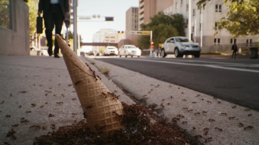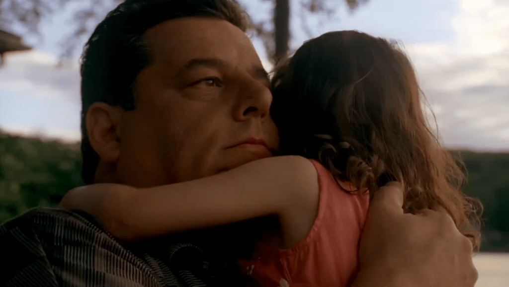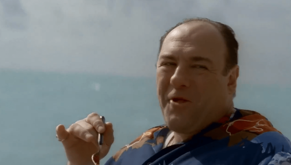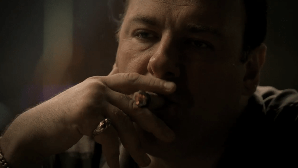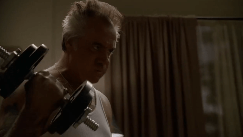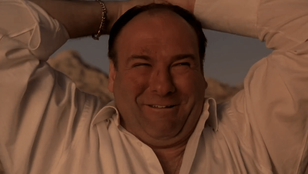 Tony’s suburban professional gangsterism crosses with family life, conscience, and sanity so much so that he starts to lose his grip on reality; however, Tony always doubles down, averts a recognition of the bloody life he’s led, accumulating more and more bodies until one final blink.